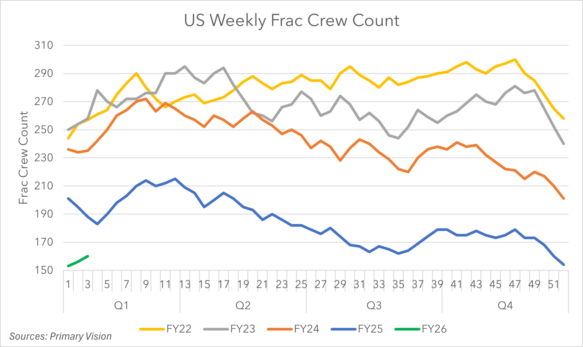 Frac spread activity for the week of 1/18/26 was 164, up from the previous week (156).